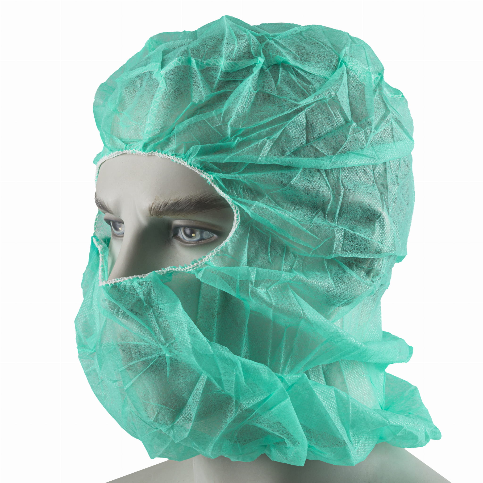 Kaptur włókninowy polipropylenowy PP bez maski. Używany w przemyśle spożywczym, rolniczym.