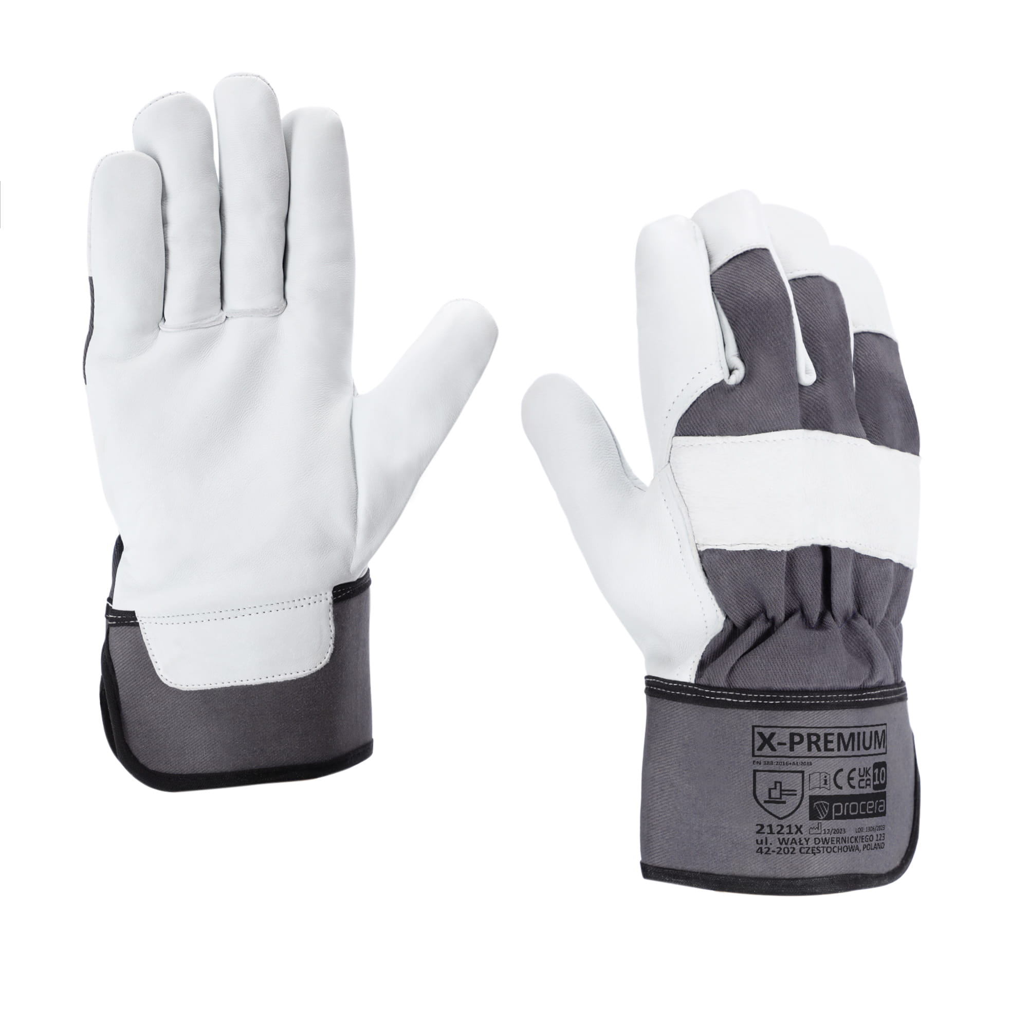 Rękawice X-PREMIUM wykonane w części chwytnej z jednego kawałka wysokiej jakości licowej skóry koziej, w części wierzchniej wzmocnienia ze skóry na linii śródręcza i czubków palców. Wierzch wykonany z mocnego drelichu w kolorze szarym. Od wewnątrz wypodszewkowane. Zakończone usztywnianym mankietem. Idealne do prac manualnych. Bardzo dobra chwytność. Duża wytrzymałość na ścieranie. CE EN 388. Opakowanie: karton 12/120. Kolor: szaro/biały.